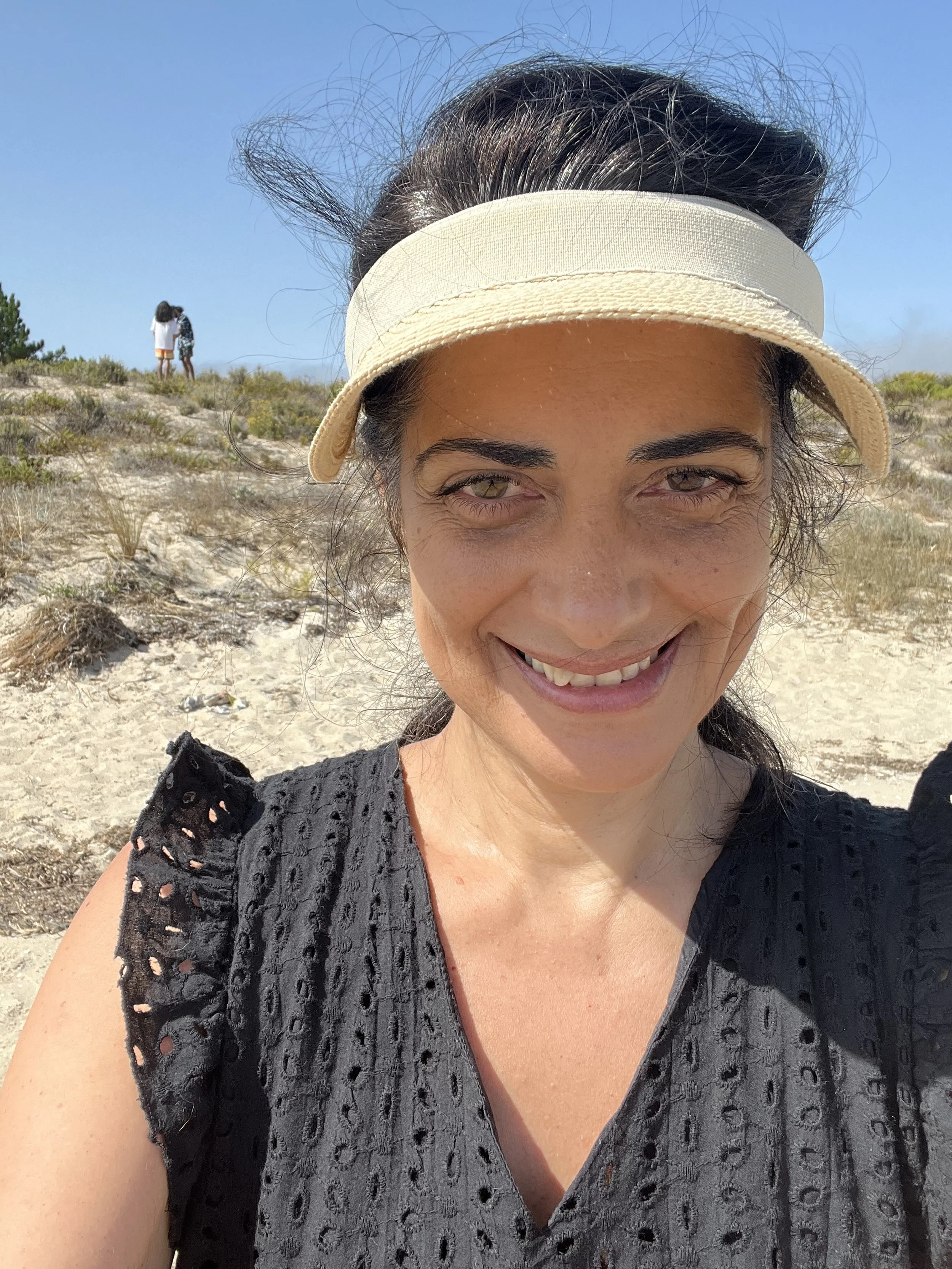 A pala para o sol, que apesar de não ser a mais bonita, ajuda imenso. Também já usei chapéu, mas incomoda um pouco, torna-se quente, além disso não dá para usar chapéu com os penteados que tenho usado, então a pala, é uma óptima alternativa, recomendo :)